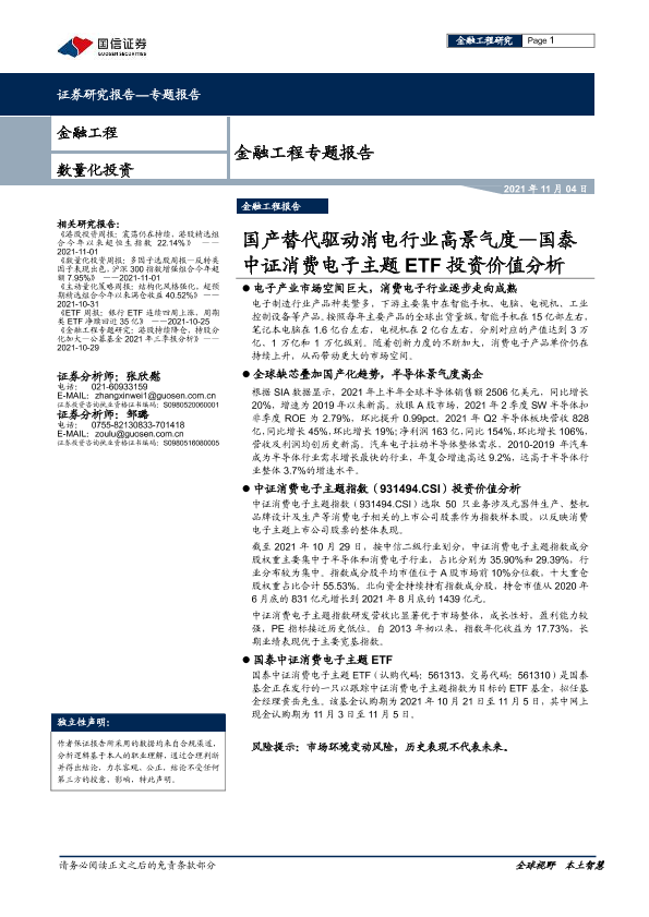 【国信证券】【20211104】国泰中证消费电子主题ETF投资价值分析,国产替代驱动消电行业高景气度-19页