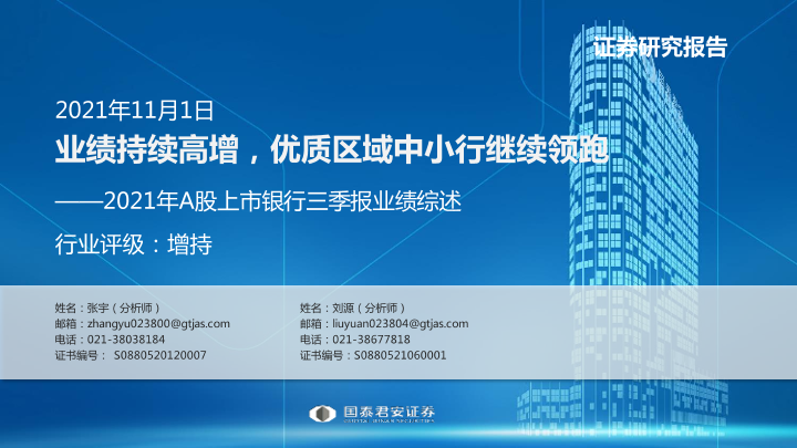 【国泰君安证券】【20211101】银行业2021年A股上市银行三季报业绩综述:业绩持续高增,优质区域中小行继续领跑-23页