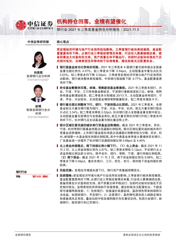 【中信证券】【20211105】银行业2021年三季度基金持仓分析报告:机构持仓回落,业绩有望催化-16页