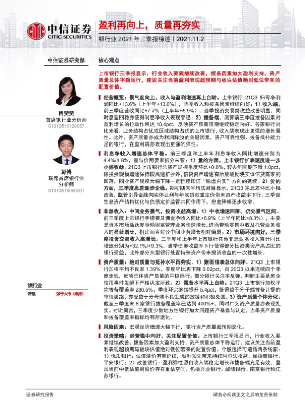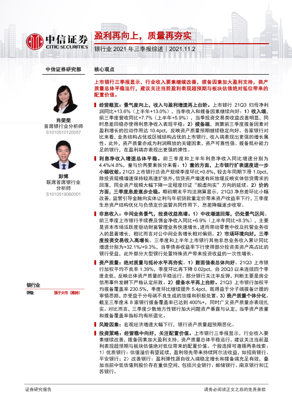 【中信证券】【20211102】银行业2021年三季报综述:盈利再向上,质量再夯实-25页