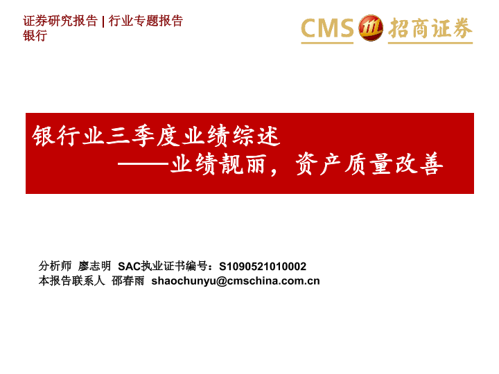 三季度业绩 投资建议 财务分析 资产质量 银行业