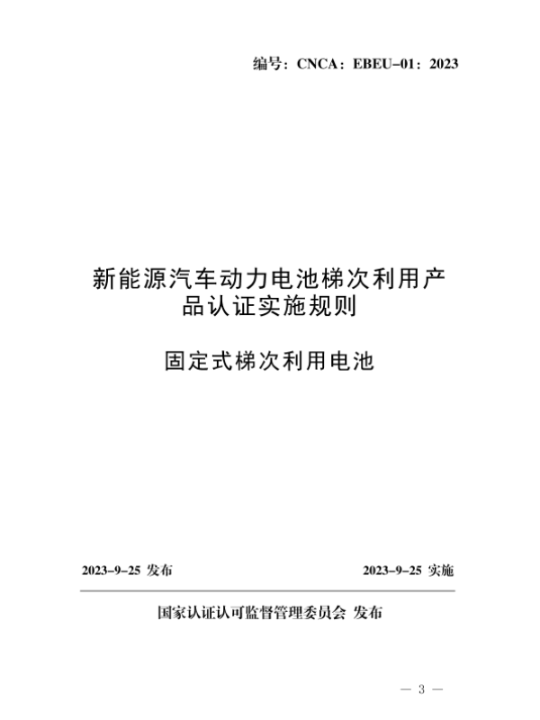 【国家认证认可监督管理委员会】【20230925】新能源汽车动力电池梯次利用产品认证实施规则-19页