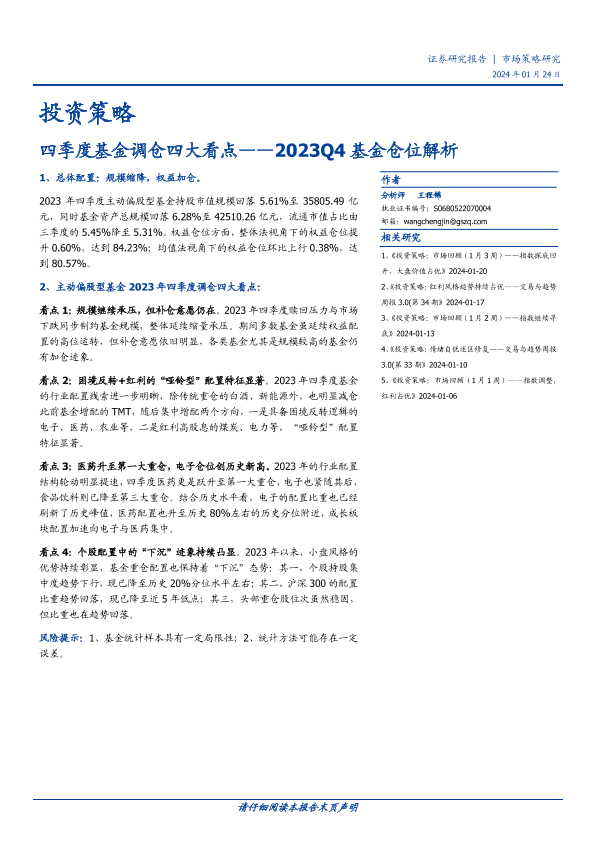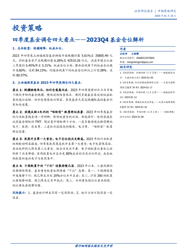 【国盛证券】【20240124】2023Q4基金仓位解析:四季度基金调仓四大看点-11页