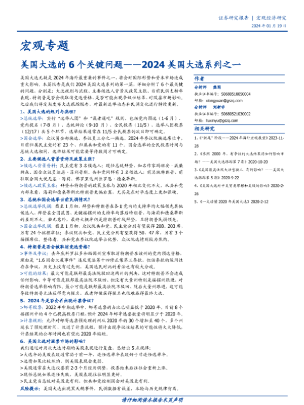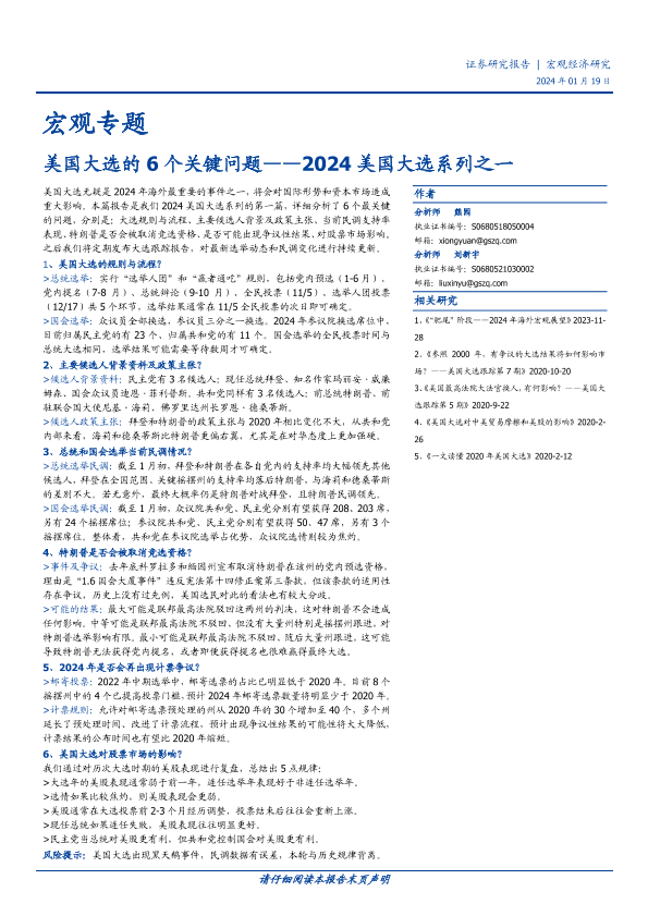 【国盛证券】【20240119】2024美国大选系列之一:美国大选的6个关键问题-16页