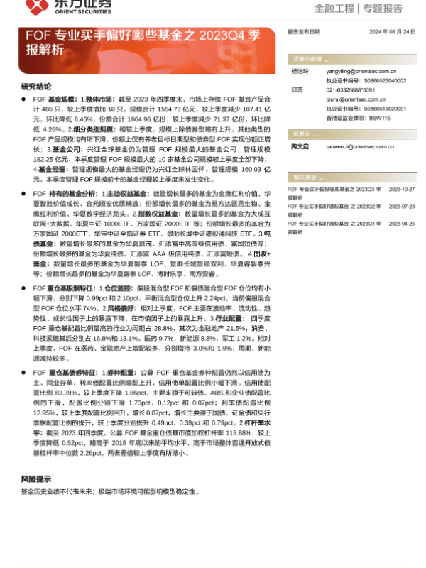 【东方证券】【20240124】FOF专业买手偏好哪些基金之2023Q4季报解析-24页