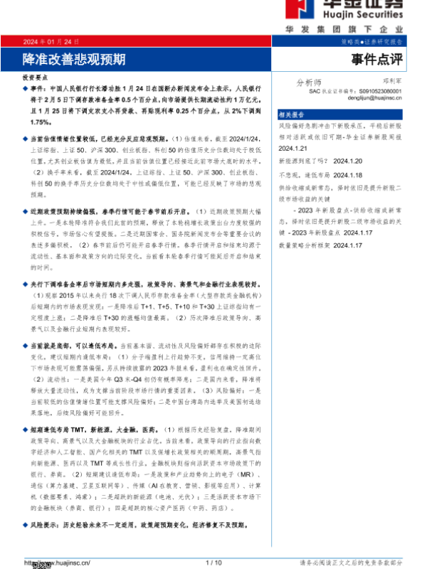 【华金证券】【20240125】事件点评:降准改善悲观预期-10页