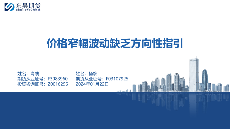 【东吴期货】【20240122】价格窄幅波动缺乏方向性指引-37页