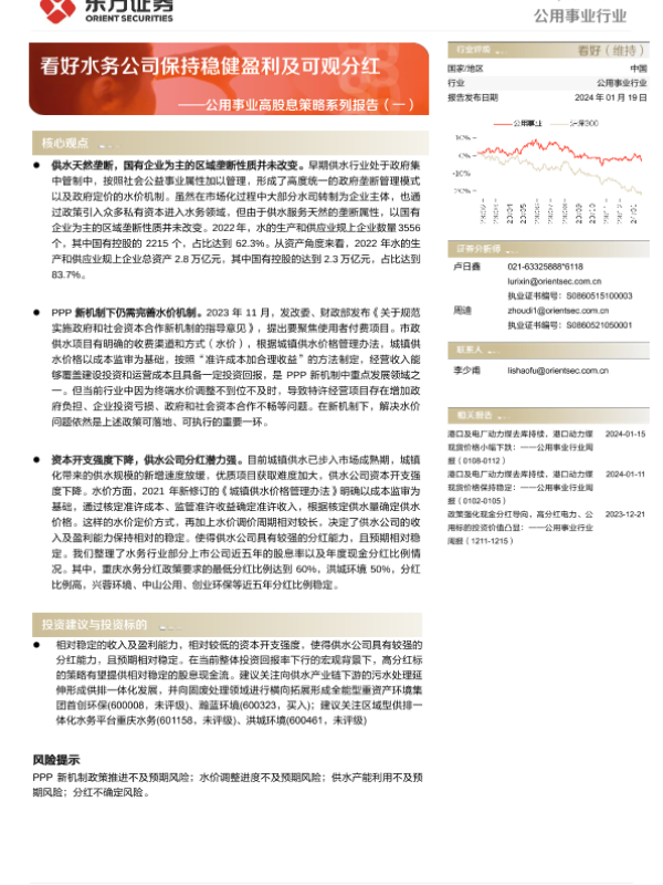 【东方证券】【20240119】公用事业高股息策略系列报告(一):看好水务公司保持稳健盈利及可观分红-18页