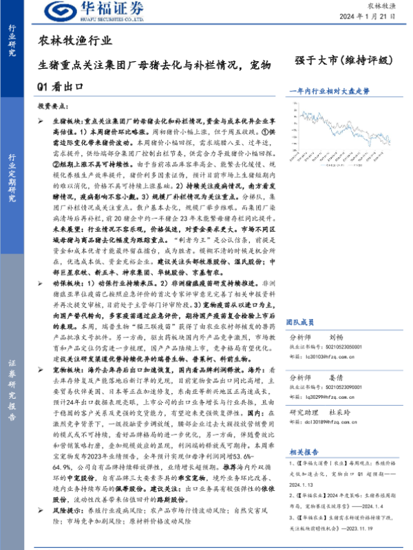 【华福证券】【20240121】农林牧渔行业:生猪重点关注集团厂母猪去化与补栏情况,宠物Q1看出口-12页
