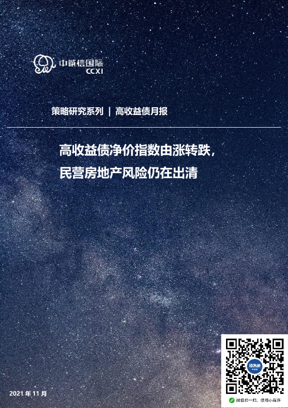 【中诚信国际】【20211104】高收益债10月策略月报:高收益债净价指数由涨转跌,民营房地产风险仍在出清-17页