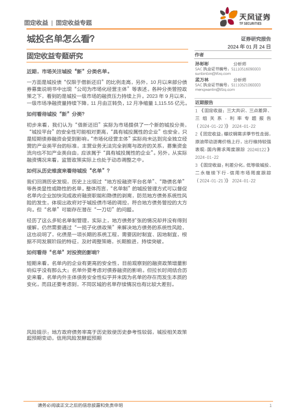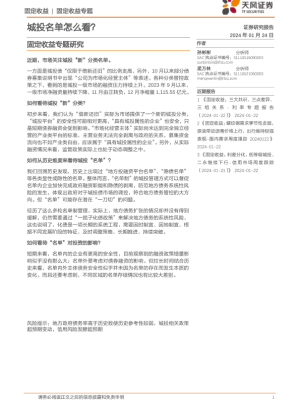 【天风证券】【20240124】固定收益专题研究:城投名单怎么看?-14页