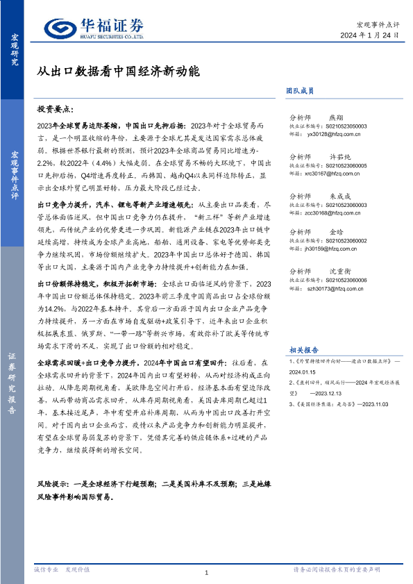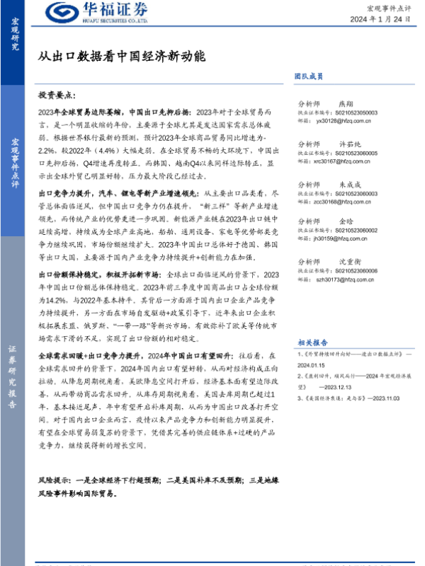 【华福证券】【20240124】宏观事件点评:从出口数据看中国经济新动能-11页