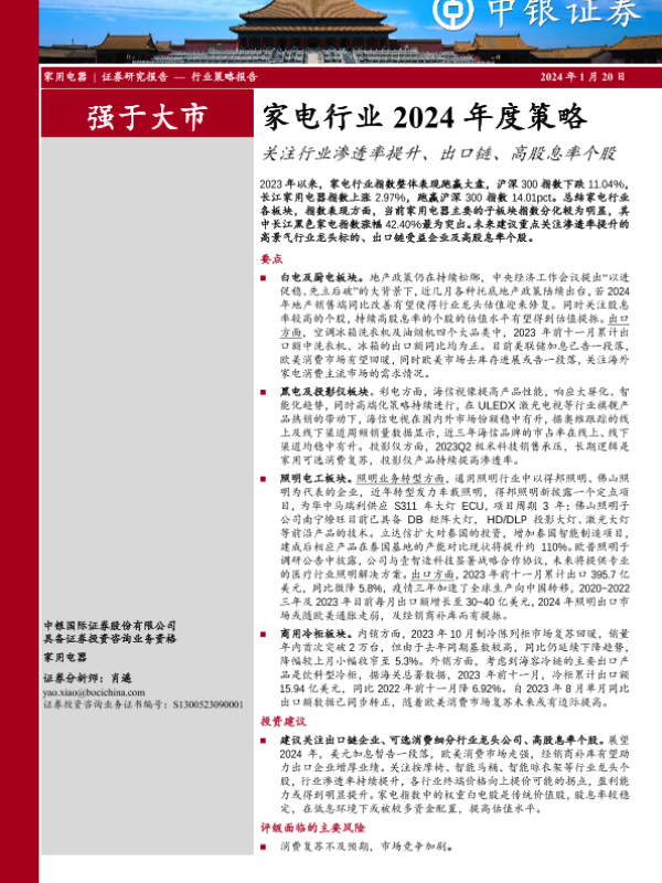 【中银证券】【20240120】家电行业2024年度策略:关注行业渗透率提升、出口链、高股息率个股-12页