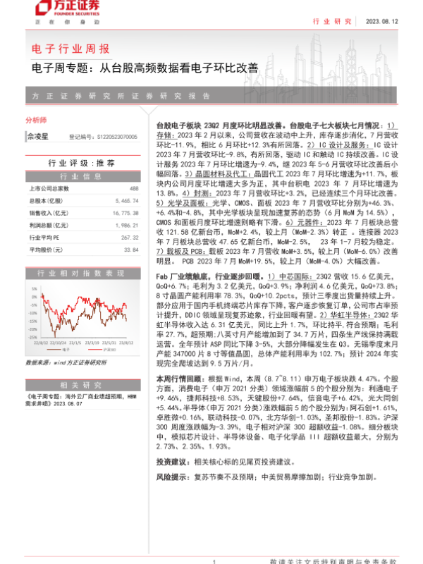【方正证券】【20230812】电子周专题:从台股高频数据看电子环比改善-15页