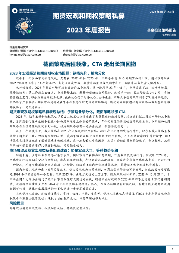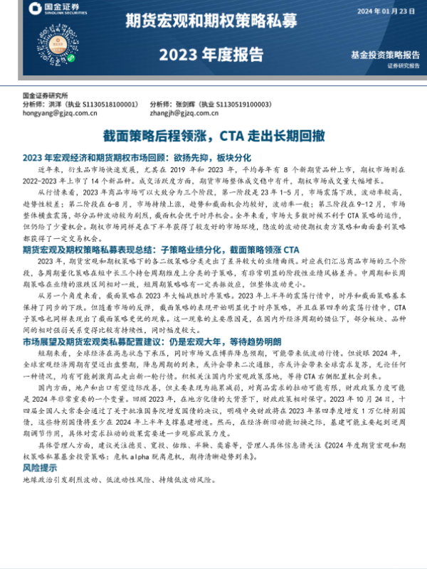 【国金证券】【20240123】期货宏观和期权策略私募2023年度报告:截面策略后程领涨,CTA走出长期回撤-20页