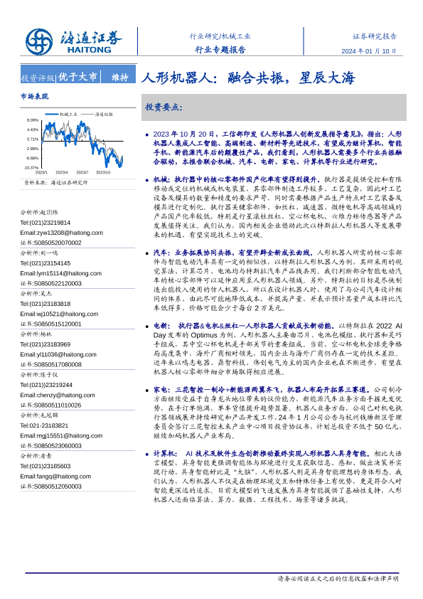 【海通证券】【20240110】机械工业行业专题报告:人形机器人,融合共振,星辰大海-20页
