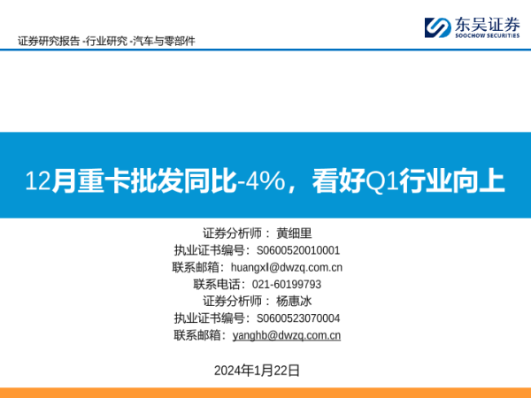 【东吴证券】【20240122】12月重卡批发同比-4%,看好Q1行业向上-23页