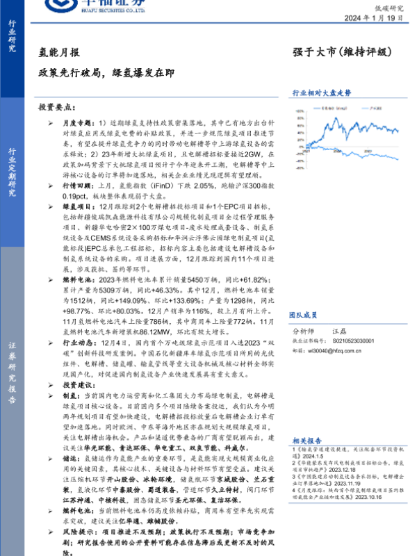 【华福证券】【20240119】氢能月报:政策先行破局,绿氢爆发在即-19页