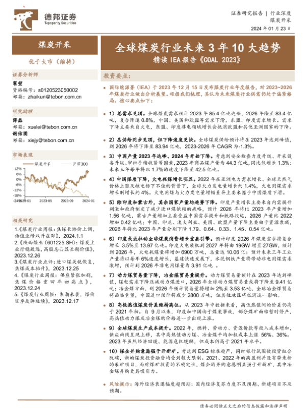 【德邦证券】【20240123】煤炭开采行业深度:全球煤炭行业未来3年10大趋势 精读IEA报告《COAL 2023》-53页