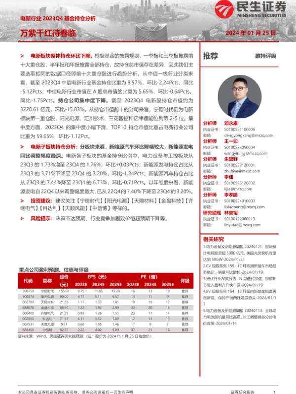 【民生证券】【20240125】电新行业2023Q4基金持仓分析:万紫千红待春临-14页