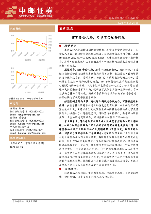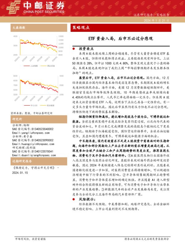 【中邮证券】【20240121】策略观点:ETF资金入局,后市不必过分悲观-10页