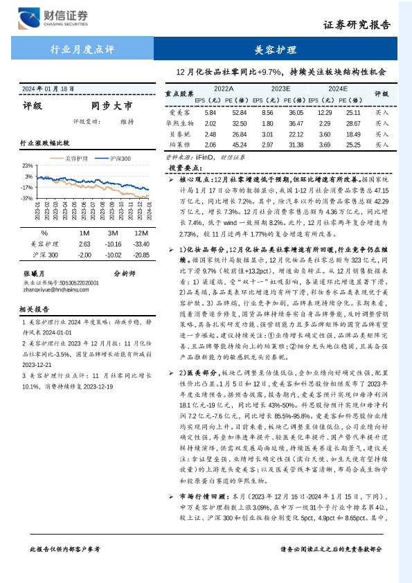 【财信证券】【20240118】美容护理行业月度点评:12月化妆品社零同比+9.7%,持续关注板块结构性机会-13页