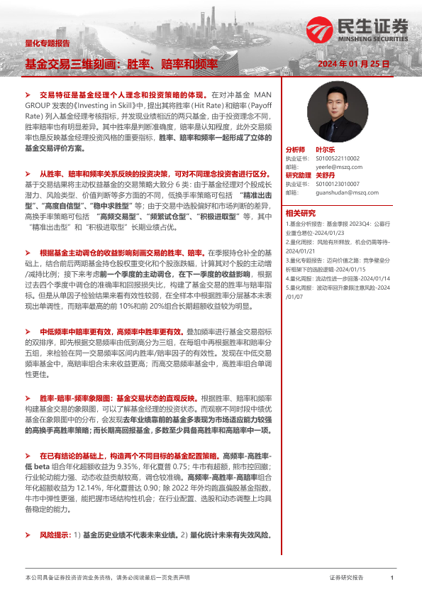 【民生证券】【20240125】量化专题报告:基金交易三维刻画:胜率、赔率和频率-21页