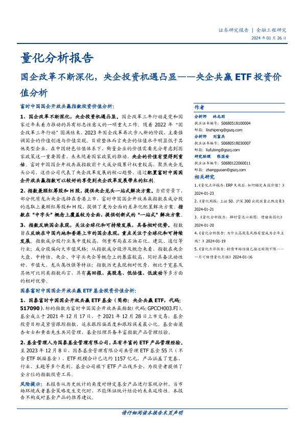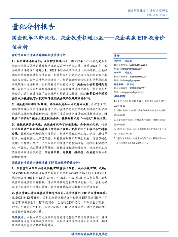 【国盛证券】【20240126】量化分析报告:央企共赢ETF投资价值分析-国企改革不断深化,央企投资机遇凸显-18页