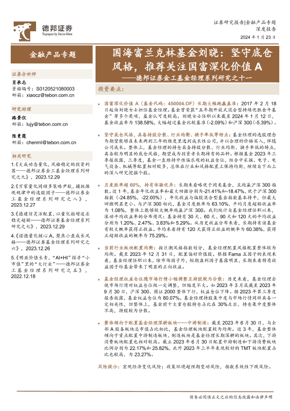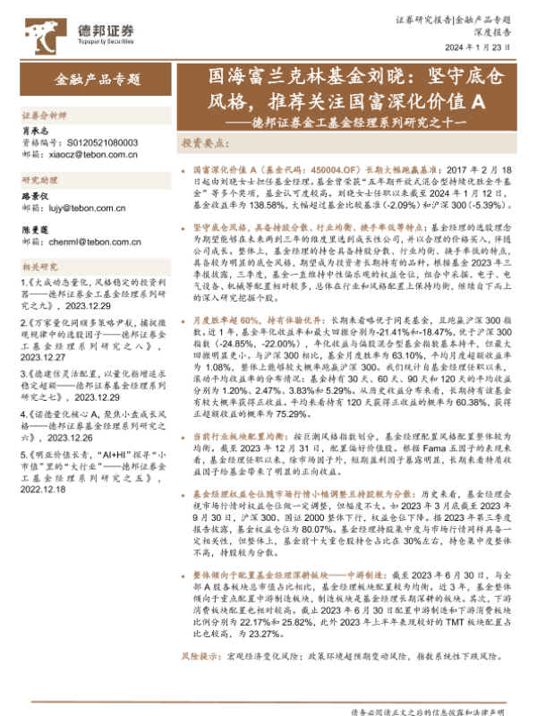 【德邦证券】【20240123】金工基金经理系列研究之十一:国海富兰克林基金刘晓,坚守底仓风格,推荐关注国富深化价值A-14页