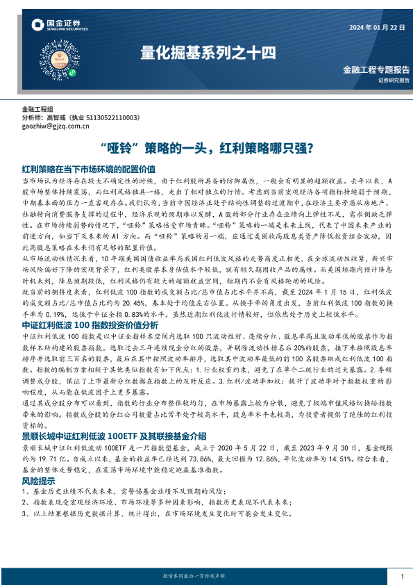 【国金证券】【20240122】量化掘基系列之十四:“哑铃”策略的一头,红利策略哪只强?-16页