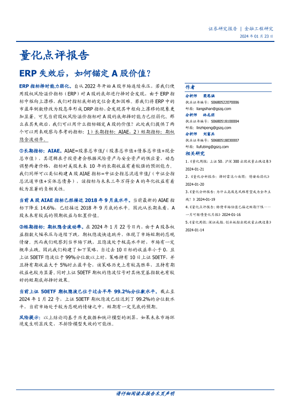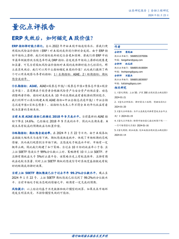 A股市场 ERP指标 期权隐含波动率 金融工程 量化分析