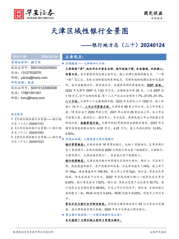 【华安证券】【20240124】天津区域性银行全景图-26页