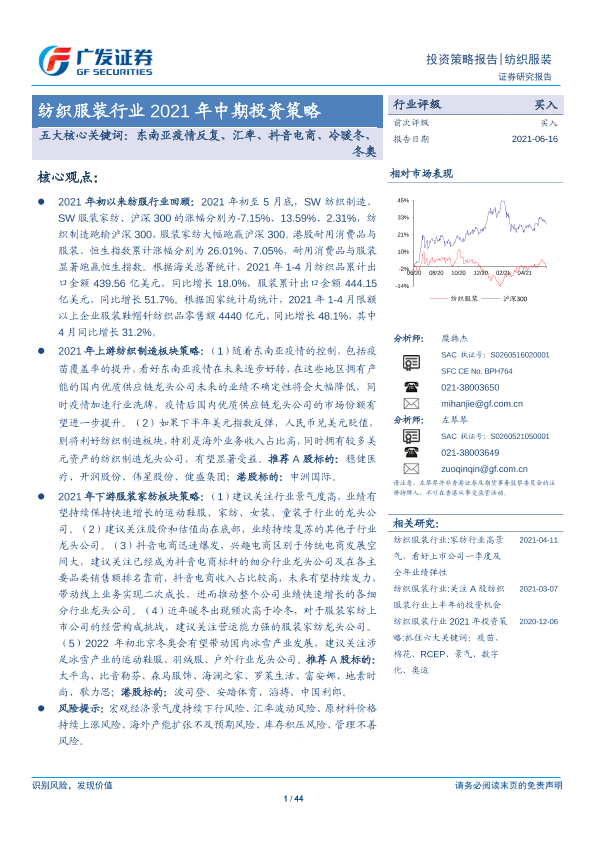 【广发证券】【20210616】纺织服装行业2021年中期投资策略:五大核心关键词,东南亚疫情反复、汇率、抖音电商、冷暖冬、冬奥-44页