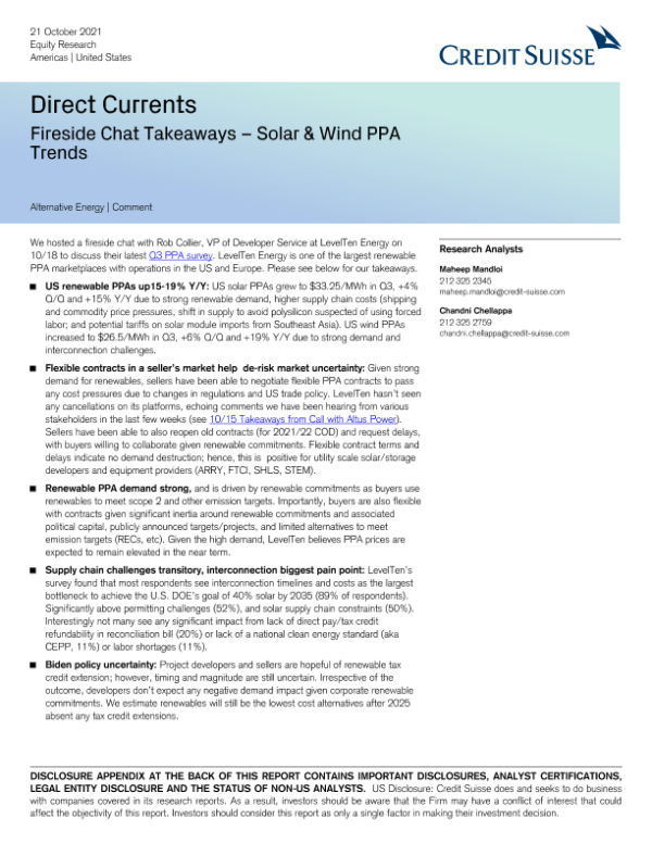 【瑞信】【20211021】瑞信-美股能源行业-炉边谈话要点:太阳能和风能PPA趋势-23页