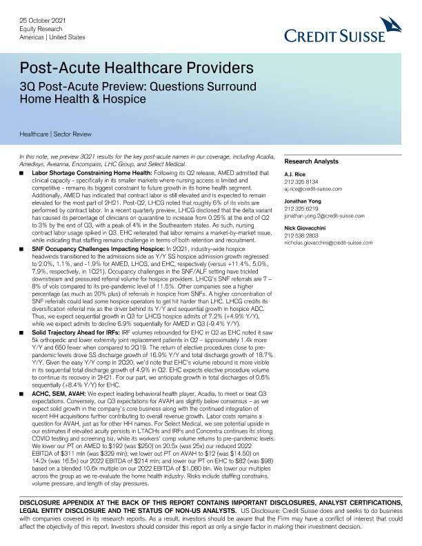 【瑞信】【20211025】瑞信-美股医疗保健行业-第三季度急性期后预览:关于家庭健康和临终关怀的问题-38页