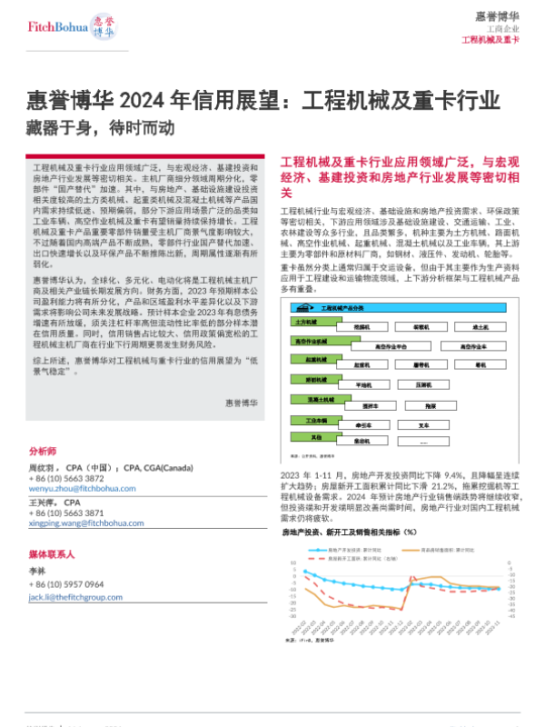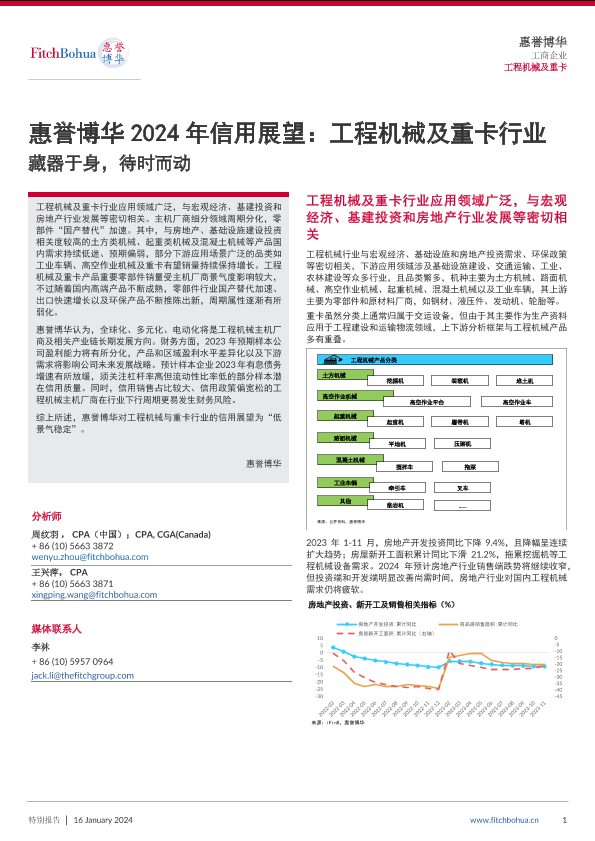 【惠誉博华】【20240116】惠誉博华 2024年信用展望:工程机械及重卡行业-11页