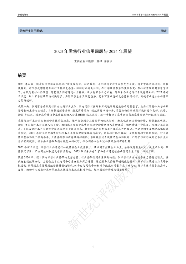 新世纪评级 批发零售 2023年 PDF 1.98 MB