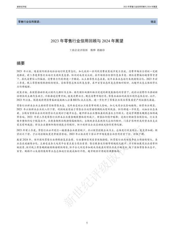【新世纪评级】【20230101】2023年零售行业信用回顾与2024年展望-34页