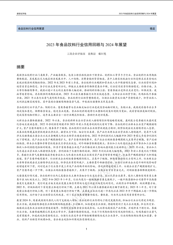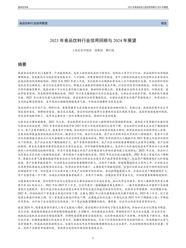 【新世纪评级】【20230101】2023年食品饮料行业信用回顾与2024年展望-50页