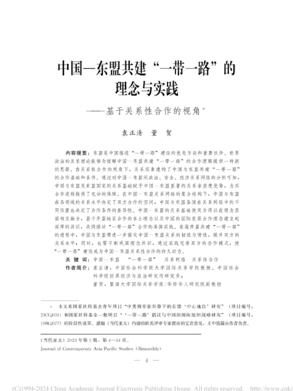 【袁正清】【2023】中国—东盟共建“一带一路”的理念与实践——基于关系性合作的视角-32页