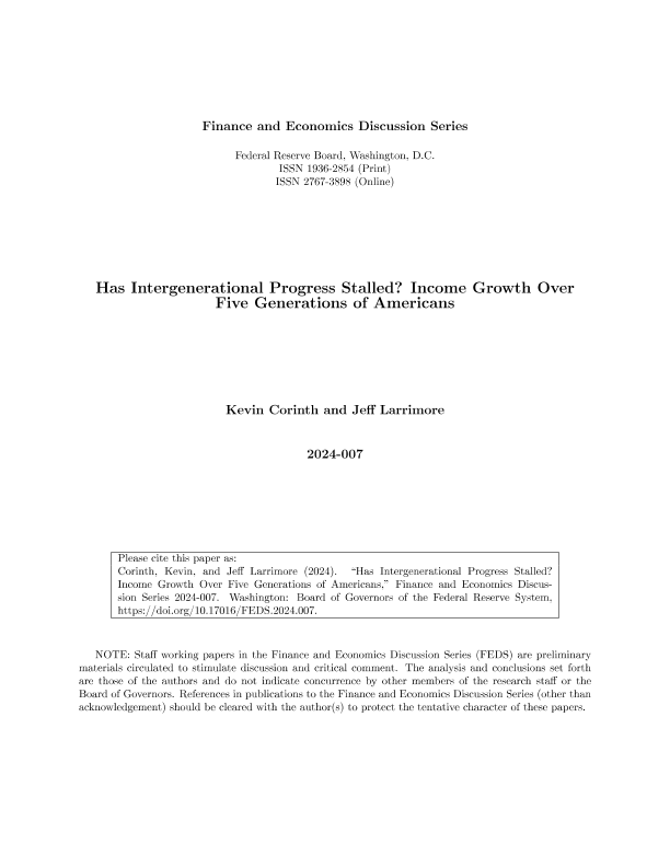 【Federal Reserve Board】【202401】代际进步停滞了吗?五代美国人的收入增长-58页
