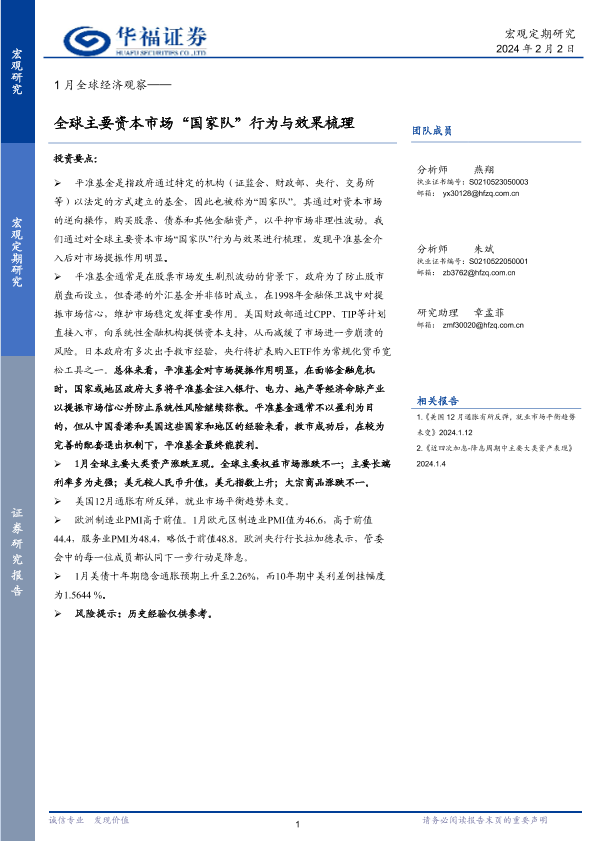 【华福证券】【20240202】1月全球经济观察:全球主要资本市场“国家队”行为与效果梳理-17页