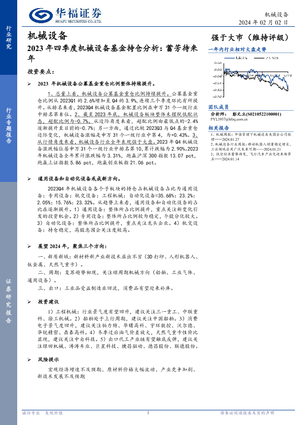 【华福证券】【20240202】2023年四季度机械设备基金持仓分析:蓄芳待来年-15页