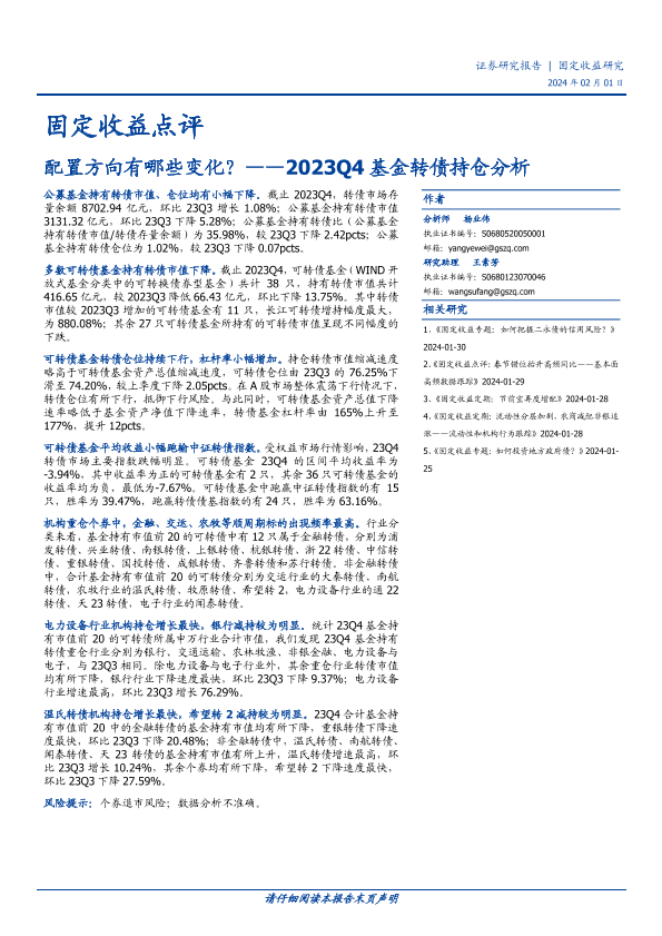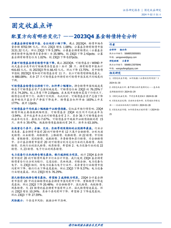 【国盛证券】【20240201】2023Q4基金转债持仓分析:配置方向有哪些变化?-13页