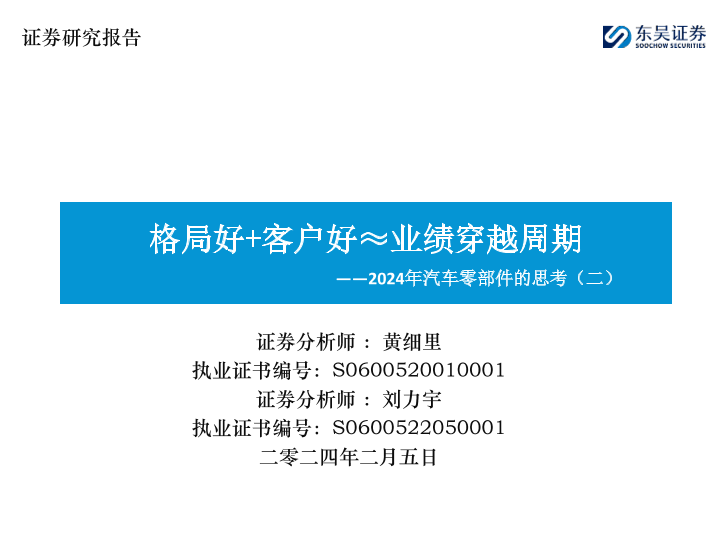 【东吴证券】【20240205】2024年汽车零部件的思考(二):格局好+客户好≈业绩穿越周期-43页