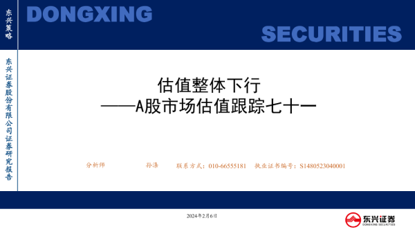 【东兴证券】【20240206】A股市场估值跟踪七十一:估值整体下行-23页