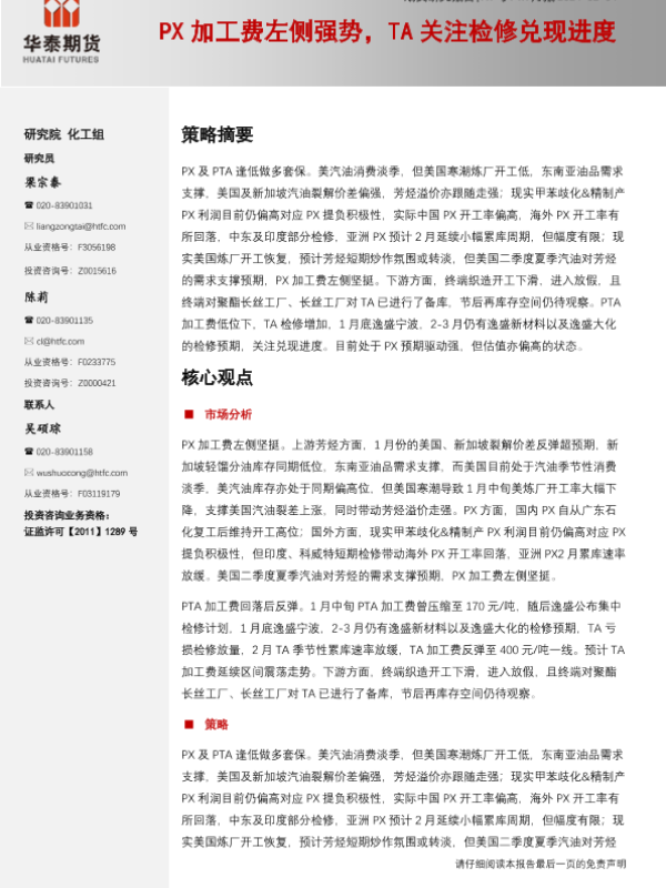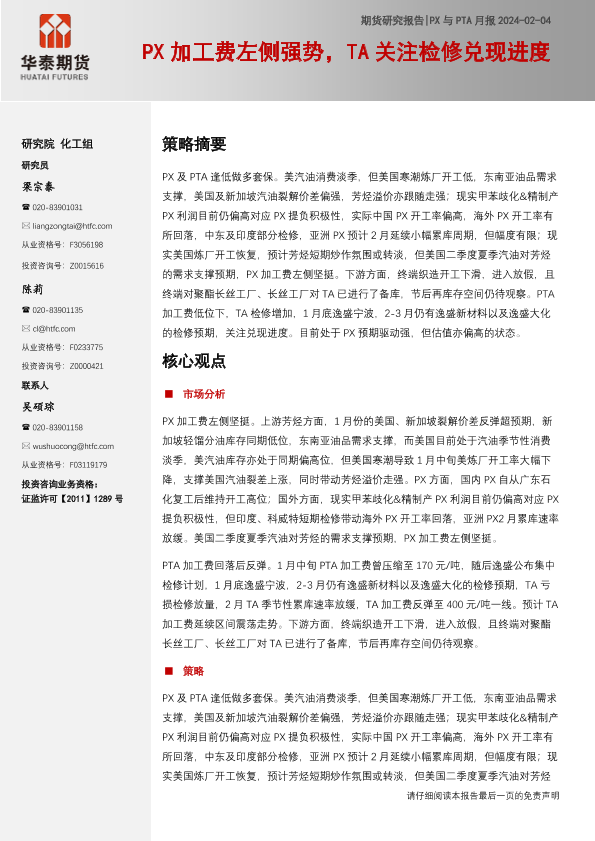 【华泰期货】【20240204】PX与PTA月报:PX加工费左侧强势,TA关注检修兑现进度-16页