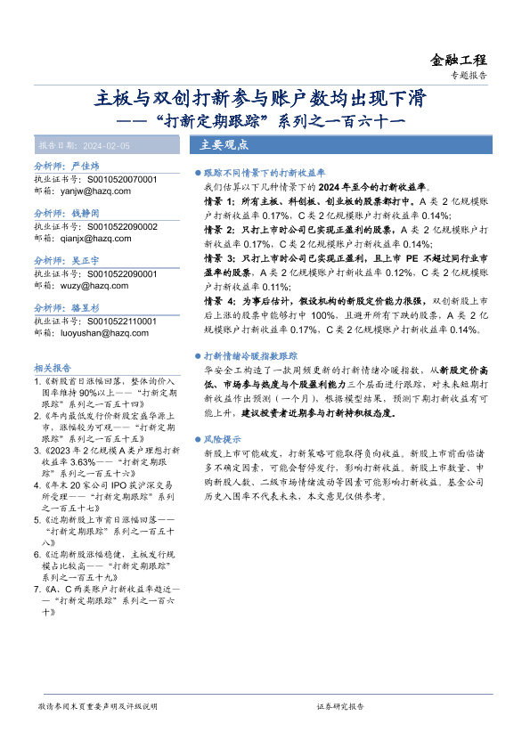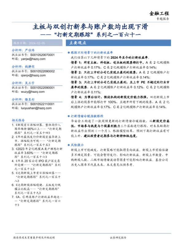 【华安证券】【20240205】“打新定期跟踪”系列之一百六十一:主板与双创打新参与账户数均出现下滑-19页