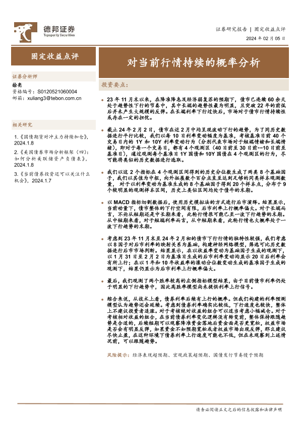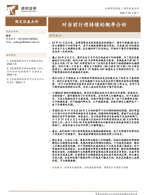 【德邦证券】【20240205】固定收益点评:对当前行情持续的概率分析-15页