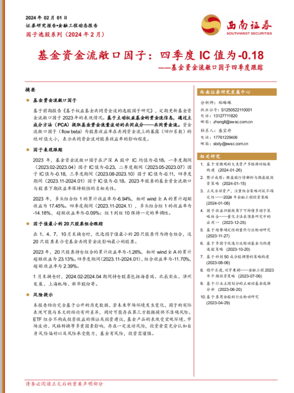 【西南证券】【20240201】基金资金流敞口因子四季度跟踪:基金资金流敞口因子:四季度IC值为-0.18-11页